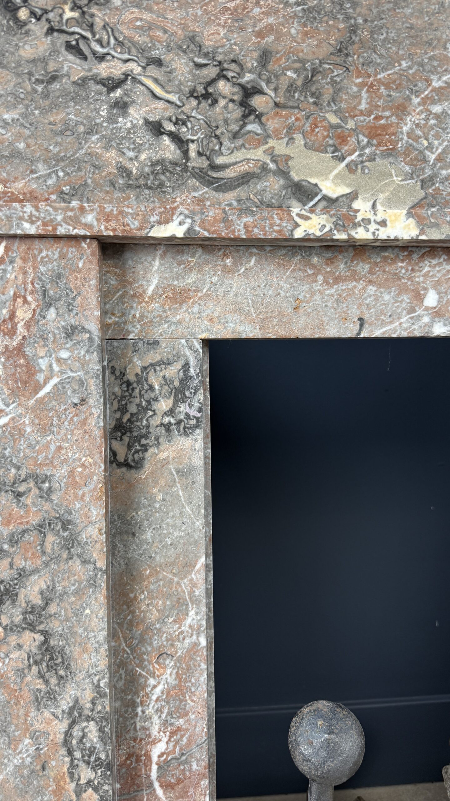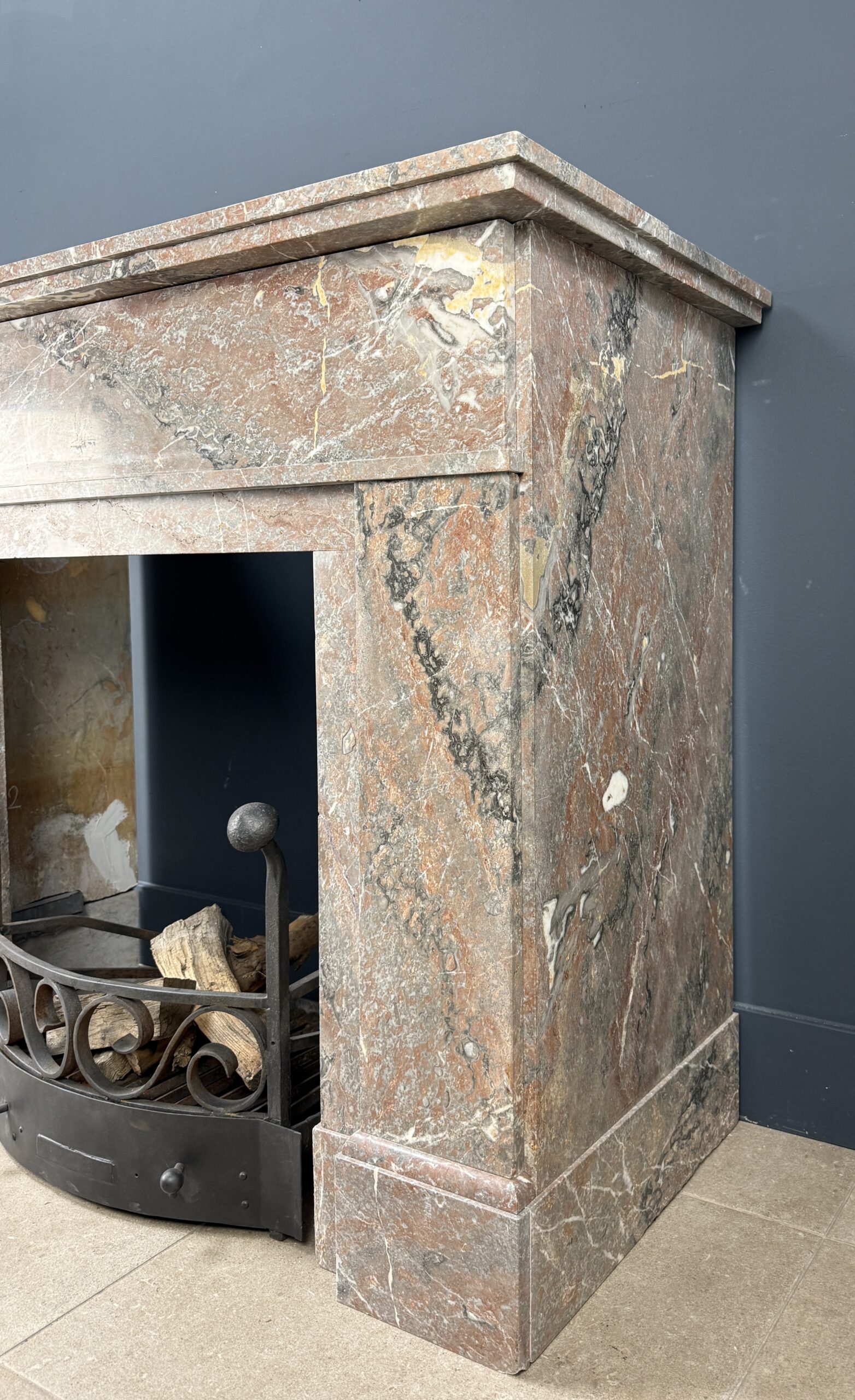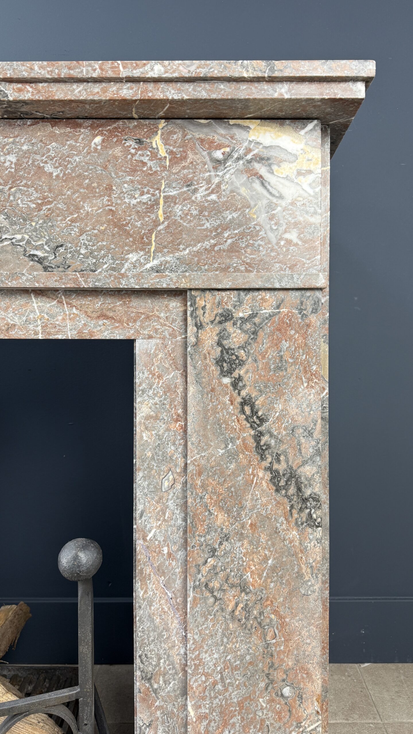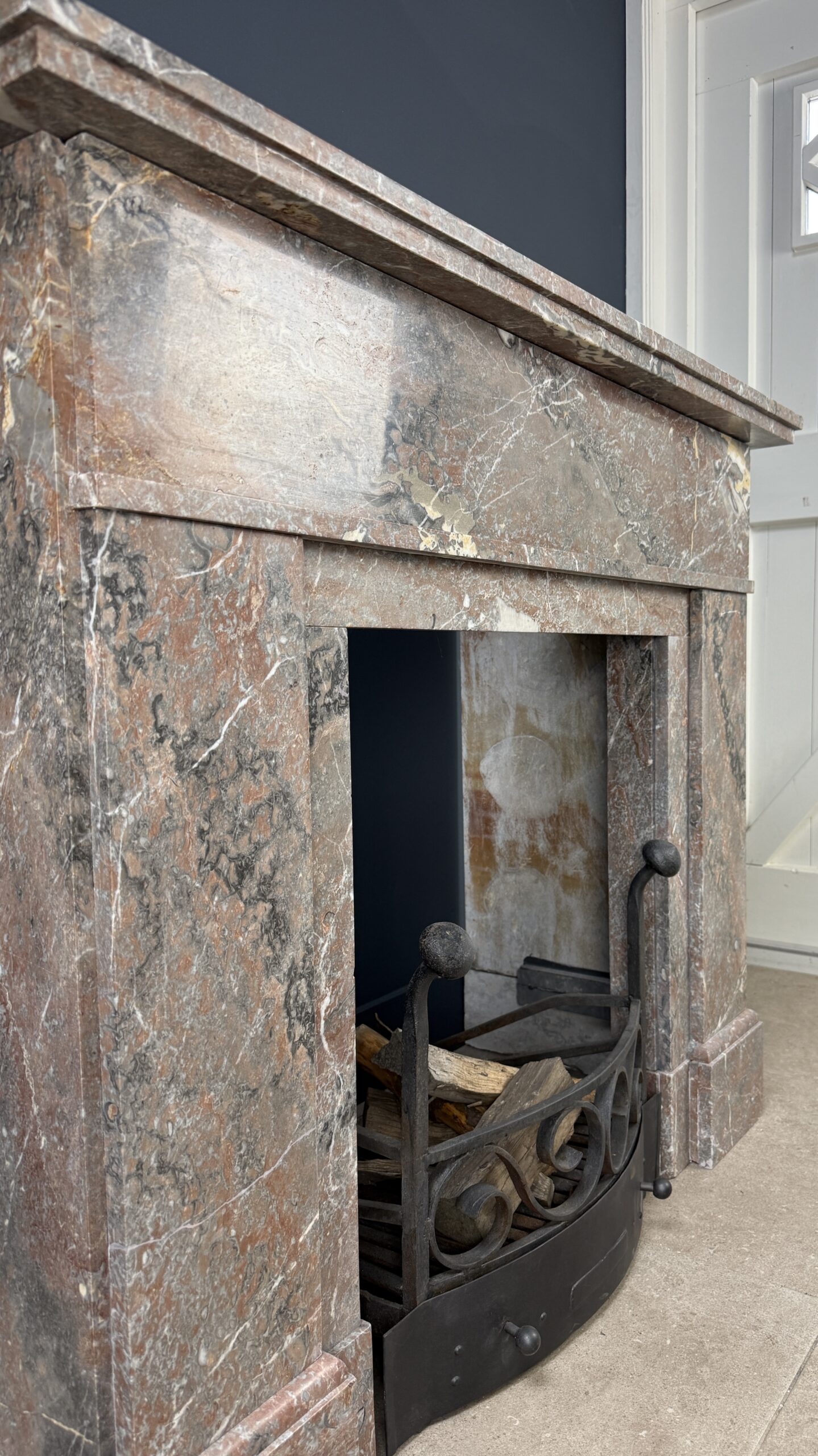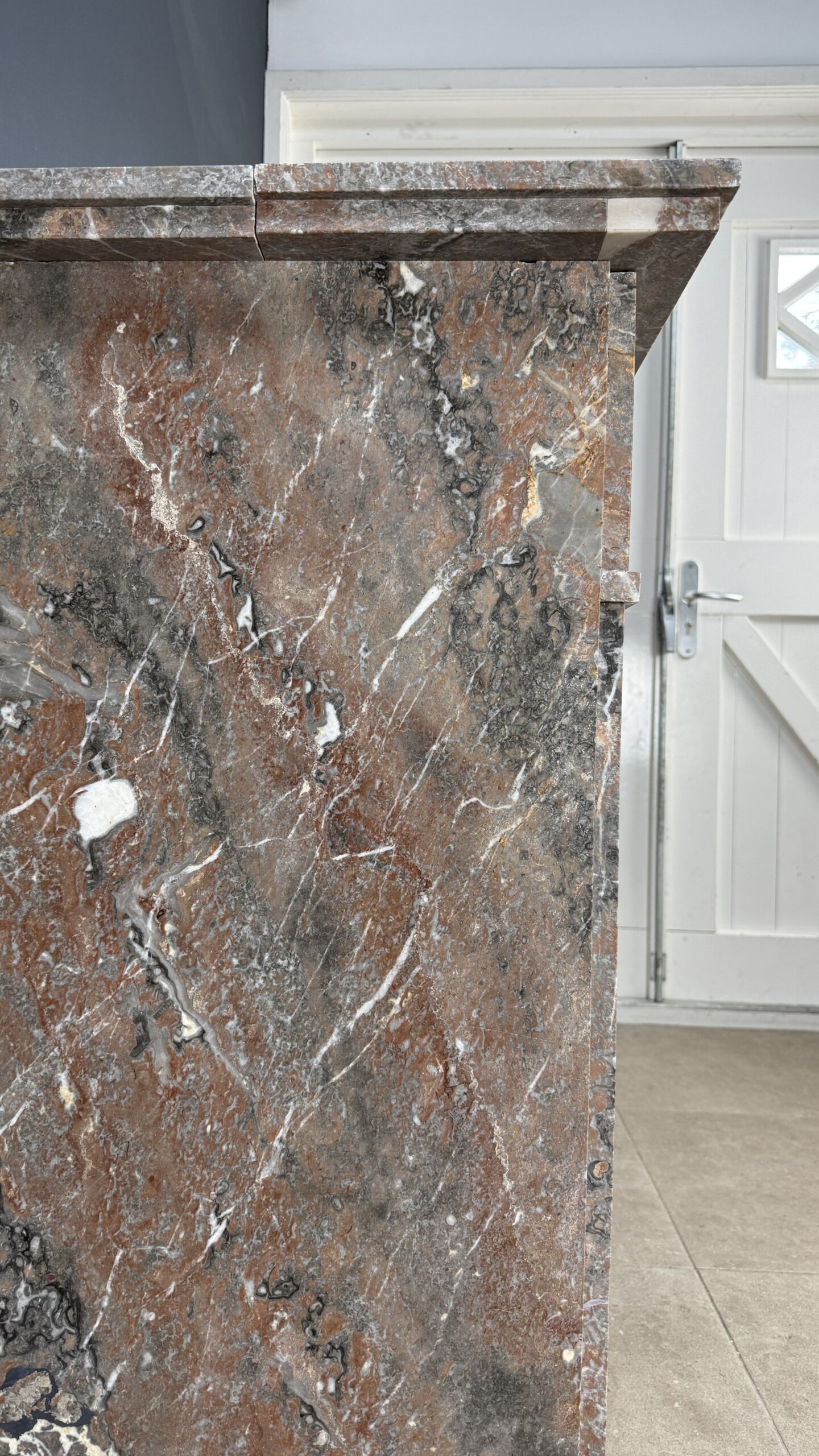 Deze elegante antieke omloopschouw is uitgevoerd in prachtig roodbruin geaderd Rouge Royal marmer met subtiele nuances van grijs, beige en groen wat zorgt voor een warme en verfijnde uitstraling.