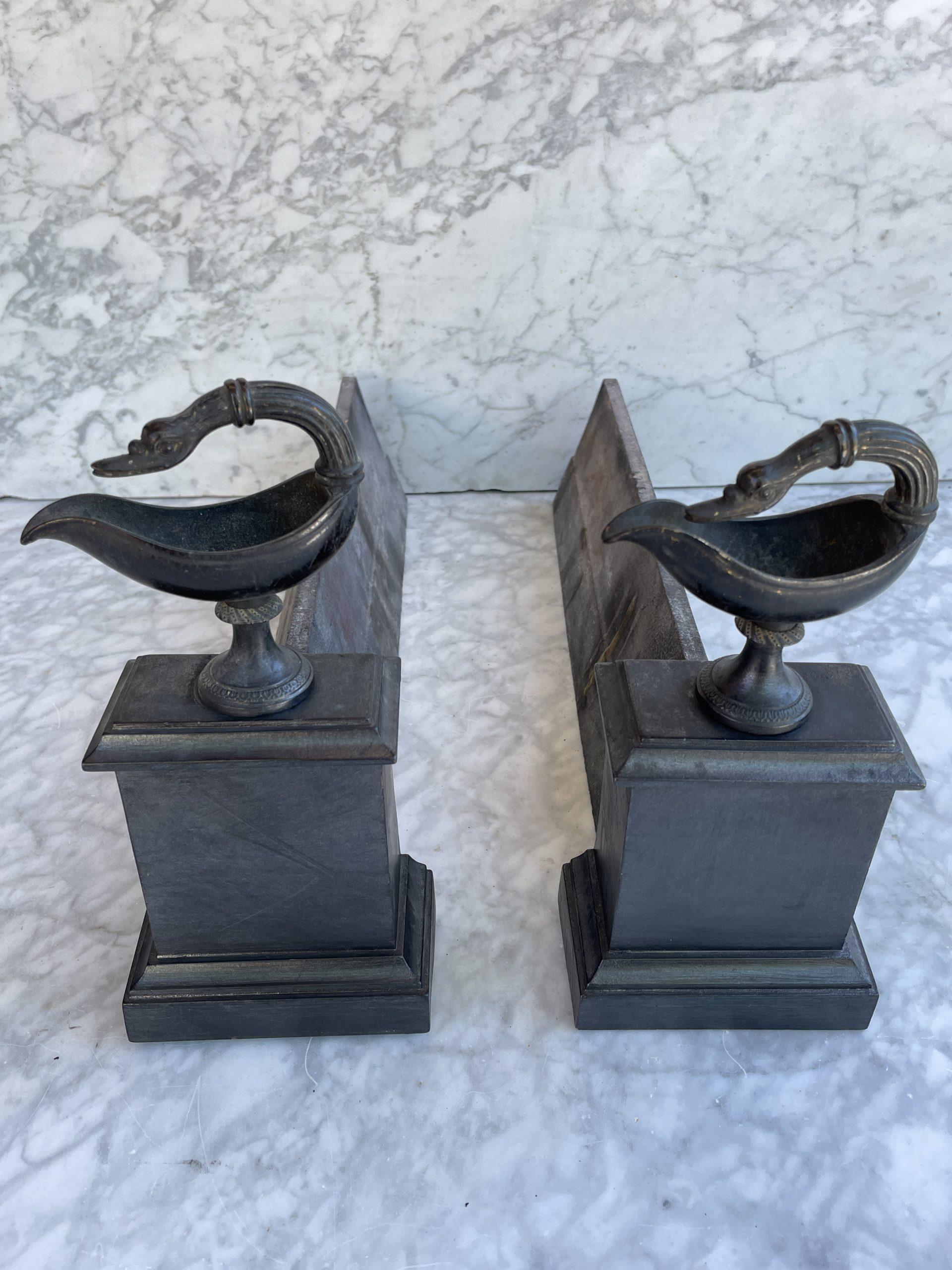 Elegante Set Gietijzeren Antieke Stookbokken.